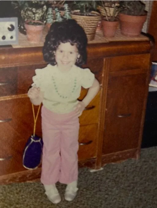 Arline (pronounced R-line) and Stella were my grandmothers whose respective basements were filled with vintage treasures throughout my childhood … think 1960s dresses, 1970s lamps, dazzling costume jewelry, and kitschy paintings. Both basements had cocktail bars with sparkly, plastic swizzle sticks and old fashioned couches flanked by mid-century side tables. Grandma Stella also had a fake fireplace that would glow yellow and red while a way-too-loud motor whirred.